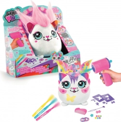 V tejto jedinečnej sade nájdete plyšáka s chyťami, airbrush nástroj na batérie, tri fixky a tridsať šablón pre neobmedzené možnosti dekorovania. Po vypraní podľa návodu môžete začať znova a vytvoriť nový dizajn.