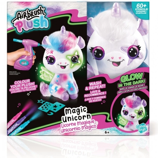 Uvoľnite svoju kreativitu s airbrush štúdiom na výrobu kúzelne svietiaceho jednorožca. V tomto balení nájdete všetko, čo potrebujete na vytvorenie svojho unikátneho dizajnu: