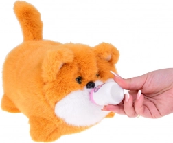 V balení nájdete aj malú fľaštičku, ktorú môžete priložiť k ňufáčiku psíka a predstierať, že ho kŕmite. Pri tom budete počuť veselé mlaskanie, napodobňujúce zvuky pri požití obľúbenej psej pochúťky.