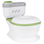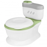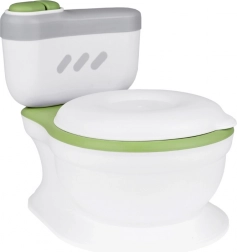 Interaktívny detský nočník v tvare skutočného WC spríjemní nácvik na toaletu vďaka realistickému zvuku splachovania a veselým melódiám. Má mäkké polstrované sedadlo, vyberateľnú nádobu na jednoduché čistenie a praktický zásobník na vlhčené obrúsky. Stabilná konštrukcia, pohodlné sedenie a tlačidlo imitujúce splachovanie robia z nočníka hravú a motivujúcu pomôcku na každodenný tréning.
