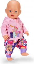 S týmto setom oblečenia dodáte bábike aj medvedíkovi BABY born Teddy pohodlie a štýl pre každé dobrodružstvo. Ružová mikina na zips s kapucňou a roztomilými uškami sa ľahko oblieka, svetlofialové tričko s dlhým rukávom a medvedíkom je mäkkučké a nohavice s farebným patchworkovým vzorom zaručia pohodlie pri hraní.