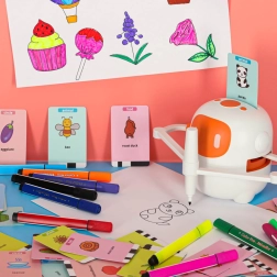 Tento interaktívny edukačný robot na kreslenie a písanie je fascinujúcou hračkou, ktorá nielen zabaví, ale aj rozvíja zručnosti vášho dieťaťa. Sada obsahuje 100 farebných kartičiek, z ktorých si dieťa môže vybrať, vložiť ich do robota a sledovať magický proces kreslenia. Robot kreslí obrázok a vytvára prostredie pre detskú kreativitu a experimenty s farbami.