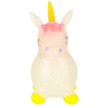 Vyrobený z pružnej a odolnej gumy, skákací jednorožec je mäkký a elastický, s certifikovanou bezpečnosťou.