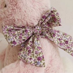 Jemná ružová farba a kvetinové detaily na uškách a labkách robia zo zajačika krásnu dekoráciu.