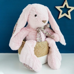 Tento veľký plyšový zajačik v jemnom ružovom odtieni poteší svojou hebkosťou a nežným vzhľadom. Rozvíja zmysly a zvedavosť detí, poskytuje pocit bezpečia a stane sa obľúbeným spoločníkom pri zaspávaní aj hraní.