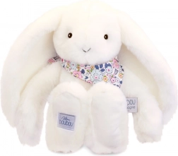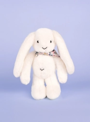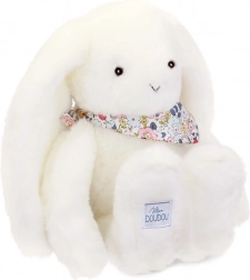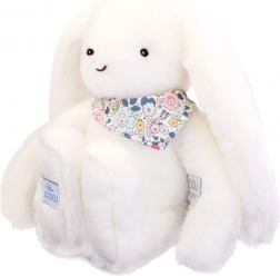 Hebký biely zajko s kvetovanou šatkou je ideálnym spoločníkom pre bábätko od narodenia. Jeho mäkkosť a jemnosť prinášajú pocit pohodlia a bezpečia.