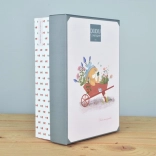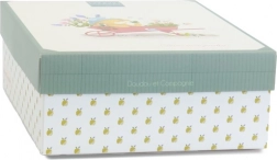 Táto plyšová kravička Aneth je ideálny darček pre každú príležitosť. Oblečená do zeleného menčestrového oblečku s kvetovaným golierikom, je súčasťou kolekcie hračiek Moja záhrada, inšpirovanej prírodou. Hračky z tejto kolekcie sú balené v krásnych darčekových krabičkách ilustrovaných akvarelom, pripomínajúce rôznorodosť a farby záhrady, čo podčiarkujú ich mená ako Ciboulette a Aneth.