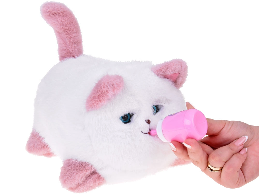 V balení nájdete malú fľaščku, ktorú môžete priložiť k ústam mačky pre simuláciu kŕmenia s doprovodnými zvukmi. Mačka Pusia tiež zachytáva a prehráva vaše slová po stlačení prednej lapky.