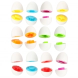 - Rozvoj motoriky – otváranie a spájanie vajec podporuje zručnosť prstov.