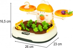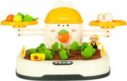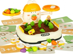 Set zapája dieťa do vzrušujúcej hry, pri ktorej sadí a vyťahuje zeleninu a umiestňuje je na váhu. Táto zábava rozvíja trpezlivosť, reflexy a pomáha zvládať drobné nezdary. Ideálne rozvíja koordináciu ruka-oko a motorické zručnosti.