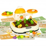 Špeciálne navrhnutá doska s otvormi umožňuje deťom precvičovať presnosť pohybov - klásť a vyťahovať mrkvu pomáha rozvíjať motorické zručnosti a zavádza prvok zdravej súťaže vo forme hry „kto rýchlejšie zberie“.