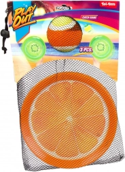 Súprava v sieťovanom vrecúšku je ideálna na cesty. Pomarančový motív a ľahké plastové pádla zaručia ľahké chytanie a rýchlu akciu kdekoľvek.
