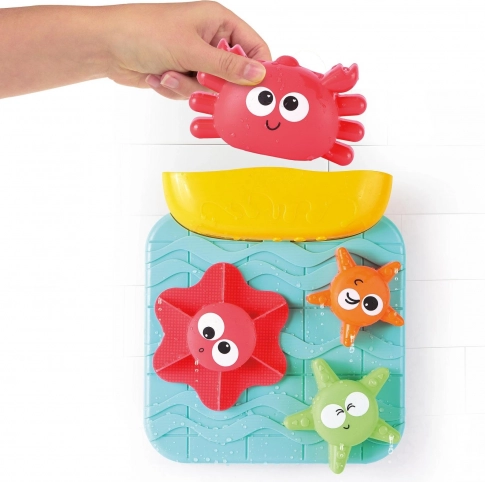 Hra s vodou podporuje koordináciu oko–ruka, zlepšuje sústredenie a rozvíja logické myslenie. Odolné plastové prevedenie je ľahko umývateľné a vhodné na každodenné použitie vo vani aj sprchovom kúte.