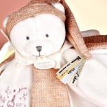 Saténové stuhy s láskyplnými odkazmi vo francúzštine, ktoré zdobia čiapku a dečku, dodávajú každému objatiu ešte nežnejší nádych. Hračka je balená v luxusnej darčekovej krabičke, ktorá je vnútri osvetlená LED diódami.