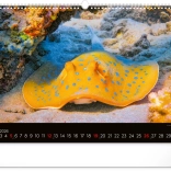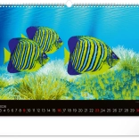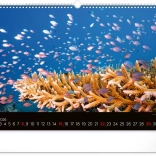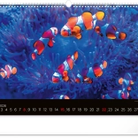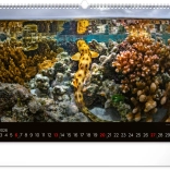 Máj prináša obraz koralového raja s pestrofarebnými rybami, ktoré dodávajú kalendáru jasné a živé farby. Tento mesiac žiari optimizmom a krásou.