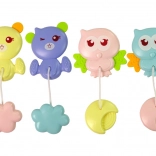 Kolotoč do postieľky je vybavený farebnými hviezdičkami a závesnými hračkami v tvare vtáčikov a medvedíkov, ktoré motivujú dieťa k naťahovaniu ručičiek a chytaniu zavesených predmetov. Pomáhajú tak rozvíjať zmysly a posilňujú svaly. Bočné časti sú z mäkkej, netoxickej gumy, ktoré môžu slúžiť ako hryzátko.