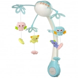 Kolotoč možno pripevniť na postieľku aj v kočíku. Svetelný obraz projektu priťahuje pozornosť dieťaťa. Kolotoč ponúka reguláciu hlasitosti a vďaka nastaviteľnému držiaku sa hodí na väčšinu postieľok.
