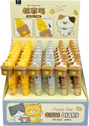 Pero má pohodlný úchop, dobre sedí v ruke a píše plynule, vďaka čomu je každodenné používanie radosťou. Najväčšou atrakciou je klikací mechanizmus – stlačením hornej časti pera nielenže vysunie náplň, ale taktiež sa vyklopí mačka z boxu. Toto zábavné a funkčné riešenie činí každé písanie potešením. Zaujímavé vzory a pastelové farby robia z pera skvelý darček alebo súčasť školskej výbavy.