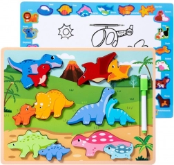 Táto drevená vzdelávacia skladačka obsahuje 12 farebných dinosaurov, ktoré dieťa umiestňuje na správne miesta, čo napomáha rozvoju logického myslenia a sústredenia. Okrem toho rozvíja manuálnu zručnosť a fantáziu.