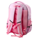 Školský batoh je vybavený dvoma priestrannými komorami, hlavná z nich má priehradku, ktorá uľahčuje organizáciu kníh a zošitov. Na prednej strane sú dve zapínacie vrecká, do ktorých sa zmestí peračník, desiata alebo ďalšie drobnosti. Na stranách sú elastické vrecká na fľašu alebo bidon.