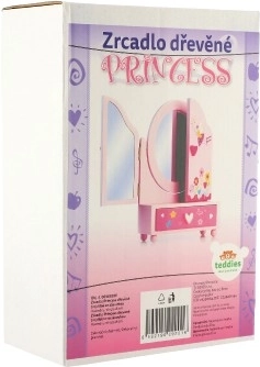 Roztomilé detské toaletné zrkadlo so šperkovnicou v motíve PRINCESS poteší každú malú parádnicu. Trojkrídlové zrkadlo s bočnými dielmi pre lepší náhľad, praktická zásuvka na poklady a pevné drevené spracovanie v jemnej ružovej farbe. Ideálne na ukladanie prstienkov, náramkov a korálikov a na podporu kreatívnej hry.