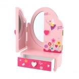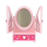 Výrobok je vyrobený z kvalitného dreva a má stabilnú konštrukciu. Približný rozmer otvoreného zrkadla je 33 cm; balenie má rozmery cca 18 × 26 × 10 cm. Vhodné pre deti od 3 rokov.