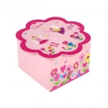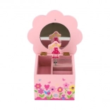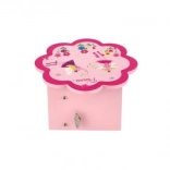 Okúzľujúca drevená šperkovnica v ružovej farbe poteší každú malú milovníčku rozprávok. Veko s kvetinovým tvarom skrýva zrkadielko a po otvorení sa spustí hudobný mechanizmus, ktorý premení každé zdobenie na čarovný rituál. Vnútorné členenie s priehradkami a spodná zásuvka pomáhajú udržať poriadok v prstienkoch, náramkoch, korálikoch aj drobných pokladoch.