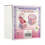 Roztomilá ružová šperkovnica pre malé parádnice bezpečne uschová prstienky, náramky aj ďalšie poklady. Má praktické priehradky, vysúvaciu zásuvku, zrkadielko a po otvorení prehrá jemnú melódiu. Vďaka drevenému prevedeniu a kvetinovému motívu s princeznami je nielen krásnym doplnkom detskej izby, ale aj odolným organizérom na šperky. Vhodné od 3 rokov.