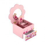Detská šperkovnica s kvetom a zrkadielkom – drevená, hudobná, ružová