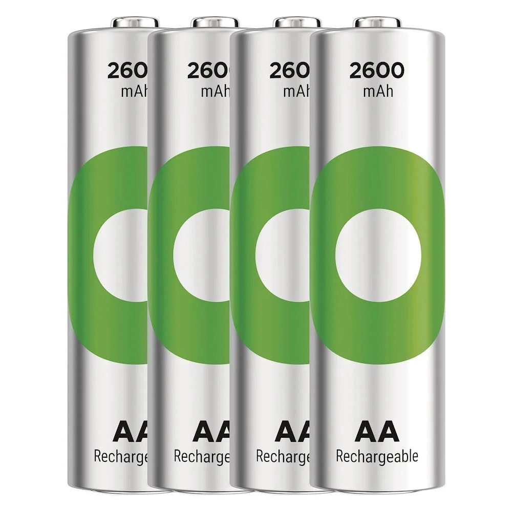 Súprava štyroch batérií GP ReCyko ponúka vysokú kapacitu 2600mAh a životnosť až 300 nabíjacích cyklov, čo zodpovedá viac ako 4800 jednorazovým batériám. Prednabitý a pripravený na použitie, udrží 70% energie po 6 mesiacoch od nabitia. Pracovná teplota od -20 °C do +50 °C zaisťuje spoľahlivú prevádzku v extrémnych podmienkach.