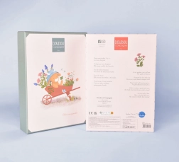 Doudou kravka Aneth je navrhnutá s láskou k prírodným motívom. S kolekciou „Moja záhrada“ zaujme vaše dieťa rozmanitosťou farieb a textúr materiálov, ktoré stimulujú jeho zmysly a podporujú vývoj jemnej motoriky. Kravka je oblečená do modrého klobúčika a je dodávaná s hebkou dekou.