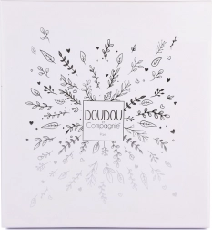 Plyšový medvedík od značky Doudou je navrhnutý tak, aby deťom už od narodenia prinášal pocit bezpečia a pohodlia. Má béžovú čiapku so saténovými stuhami s odkazmi vo francúzštine, ktoré dodávajú každému maznaniu jemnejší nádych. Telo je vyrobené z mäkkého materiálu príjemného na dotyk, zdobeného jemnou výšivkou značky Doudou. O rozvoj zmyslov a jemnej motoriky sa starajú: