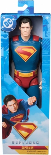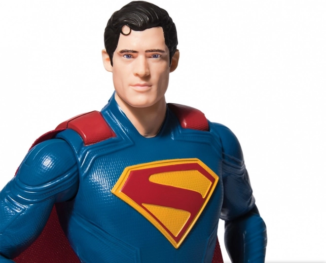 Textúrovaný modrý oblek, červený plášť a vyvýšený emblém „S“ zaručujú autentický komiksový vzhľad.