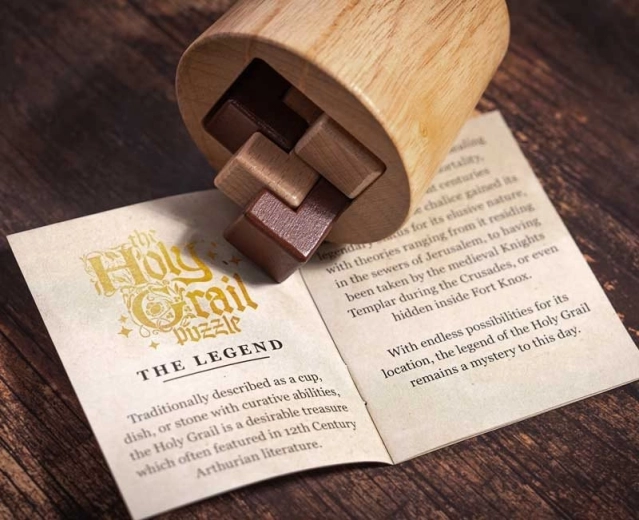 S hlavolamom Svätý Grál vstúpite do sveta mýtov a legiend. Tento nádherný drevený a kovový hlavolam je súčasťou kolekcie, ktorá prináša najúžasnejšie príbehy sveta. Vyriešte hlavolam, uvoľnite drevené bloky z kalichu a preskúmajte tajomstvá skrytej relikvie.