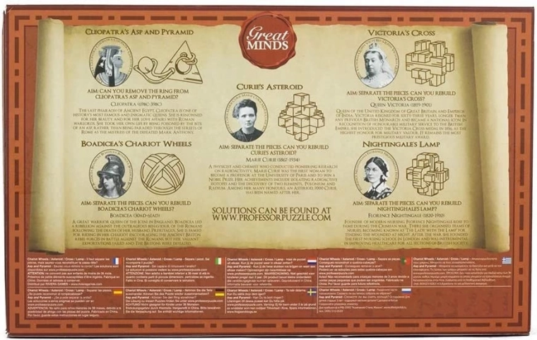 Objavte kolekciu hlavolamov, ktoré vzdávajú hold slávnym ženám histórie. Každý z piatich hlavolamov je inšpirovaný životom a dielom významných žien a vyzýva vás k rozobratiu a opätovnému zloženiu unikátnych tvarov.