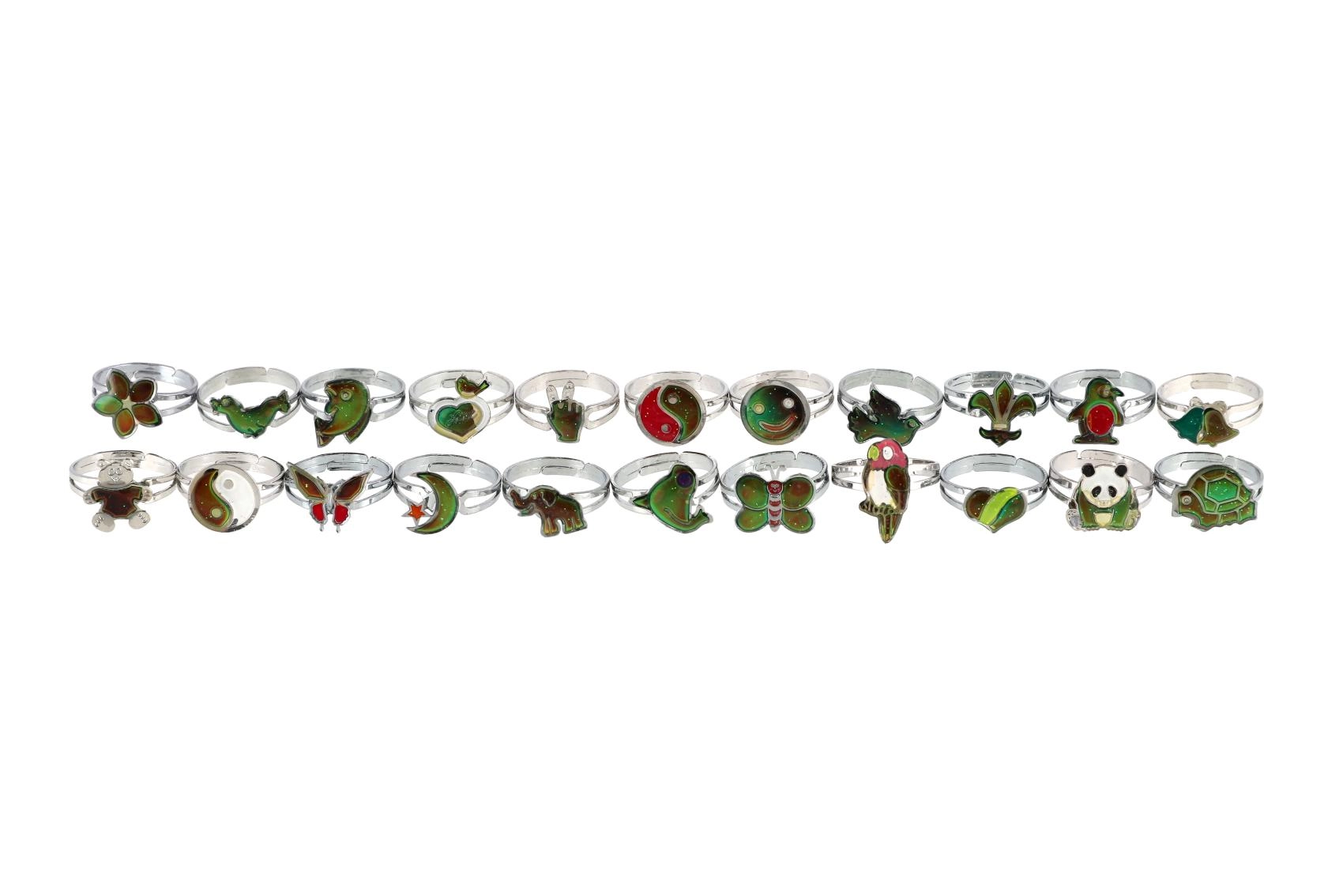 Tieto štýlové prstene spájajú hravosť s jednoduchým fyzikálnym javom. Termoaktívna vrstva okamžite reaguje na zmeny teploty tela a vytvára pútavé farebné efekty, ktoré deti milujú. Každý prsteň má nastaviteľný kovový pásik, takže sa ľahko prispôsobí väčšine prstov.