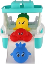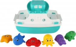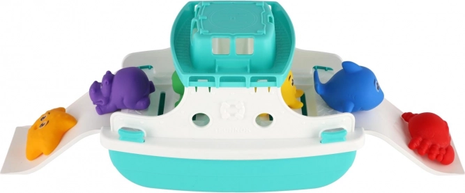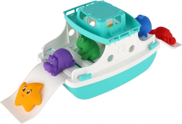 Táto detská loďka do kúpeľa je navrhnutá pre zábavu aj rozvoj zručností. Pláva na vode, má vyklápaciu rampu na nakladanie a vykladanie figúrok a ponúka dostatok priestoru na hru na palube. Súčasťou sú mäkké, farebné morské a zvieracie postavičky, ktoré deti môžu voziť, ukladať a spúšťať po rampe.