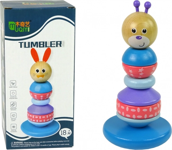 Drevená vzdelávacia pyramída Medvedík je farebná sada kociek, ktorá obsahuje 6 zaoblených krúžkov v rôznych veľkostiach a vzoroch. Na vrchole sa nachádza sladká medvedíkova hlavička. Základňa má tvar polkruhu a vďaka svojej vyváženosti poskytuje výzvu pre nasadzovanie kociek. Deti môžu stavať vežu v rôznych konfiguráciách, čo rozvíja ich predstavivosť, koordináciu ruka-oko a presnosť.