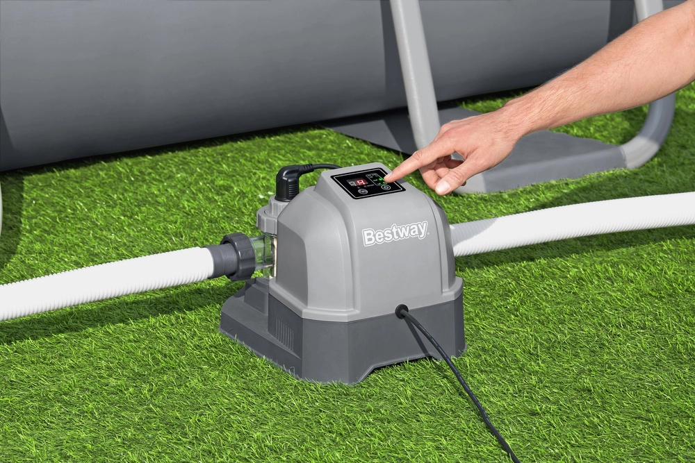 Generátor chlóru Bestway ponúka riešenie pre tých, ktorí chcú udržať vodu v bazéne čistú, bez použitia klasického chlóru. Prístroj premieňa soľ na prírodný chlór, čo efektívne čistí vodu a ničí baktérie. Kúpanie je pohodlnejšie, bez podráždenia očí a pokožky.