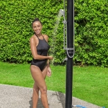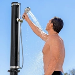Moderný dizajn a stabilný základ zabezpečujú stabilitu a estetický vzhľad. Sprcha je vyrobená z odolného materiálu, čo zaručuje jej odolnosť voči poveternostným podmienkam.