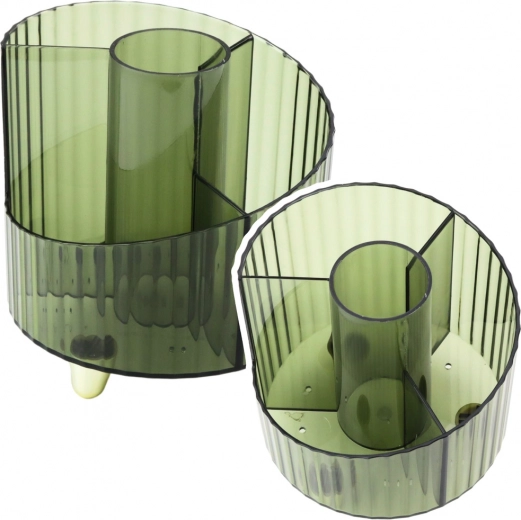 Organizér je vybavený niekoľkými priehradkami rôznych veľkostí, čo umožňuje jednoduché a intuitívne triedenie rôznorodých pomôcok – od ceruziek a pier, cez zvýrazňovače a pravítka, až po drobné príslušenstvo, ako sú gumy, sponky či nožnice. Vďaka svojim kompaktným rozmerom sa zmestí aj na malý pracovný stôl, bez toho, aby zaberal cenné miesto, a zároveň pomáha udržiavať poriadok a ľahký prístup ku všetkým potrebným nástrojom.