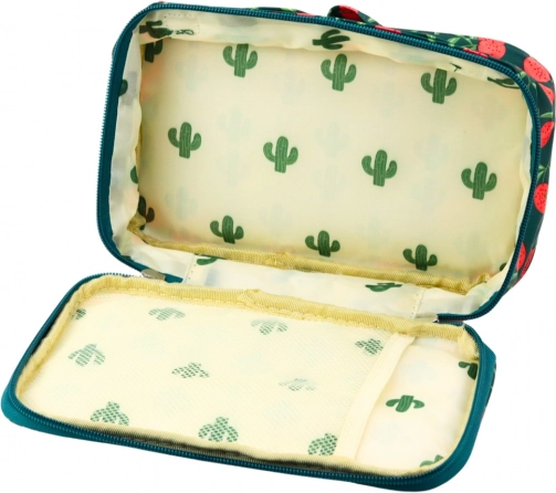 Priestranné a funkčné školské puzdro s čerešňovou potlačou je ideálne pre každodenné použitie v škole. Má jednu hlavnú komoru, ktorá pojme všetky potrebné školské pomôcky a praktické vnútorné vrecko.