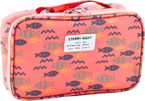 Ružový školský peračník s rybou. Funkčný dizajn s hlavnou komorou a vnútorným vreckom. Skvelé pre školu a kozmetiku.