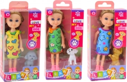Urobte svojim deťom radosť setom, v ktorom bábika vysoká 14,5 cm vo farebnom oblečení priťahuje pohľad a pridáva postavičke charakter. Figúrka psíka sprevádza bábiku v hre, čo umožňuje inscenovať aktivity ako spoločné prechádzky, kŕmenie, starostlivosť alebo hru v parku.