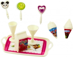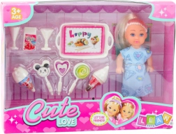 Súprava obsahuje bábiku vysokú 12 cm oblečenú v modrých šatách s roztomilými potlačami a tematickými doplnkami ako sú lízatká, zmrzliny, kornútky a tácka s občerstvením. Tieto príslušenstvá nielen že spestria hru, ale tiež podporujú rozvoj predstavivosti, manuálnych zručností a spoločenských schopností dieťaťa.