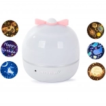 Projektor je vybavený šiestimi rôznymi vzorkovníkmi, ktoré umožňujú deťom premietať svety ako hviezdnu oblohu, podvodný svet alebo vianočné motívy. Obsahuje funkciu hudby s upokojujúcou melódiou, ktorá pomáha deťom ľahšie zaspávať.
