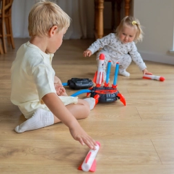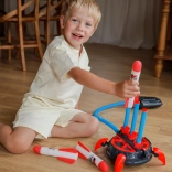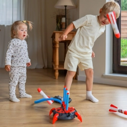 Hračka podporuje hrubú motoriku, koordinačné schopnosti a zvedavosť po vede. Vďaka jednoduchému zostaveniu bez náradia je ideálna do záhrady, parku aj na dvor – a mäkké špičky rakiet zaisťujú bezpečnú zábavu bez ostrých hrán.
