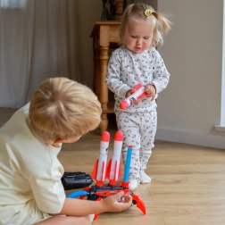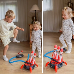 Táto viaccieľová penová raketová strelnica prináša deťom od 6 rokov množstvo pohybu, radosti a poznávania. Stačí stúpiť na pumpu a rakety z mäkkej peny bezpečne vystrelia nahor. Stabilná základňa pojme viac rakiet naraz a zaistí jednoduché a rýchle odpaľovanie.