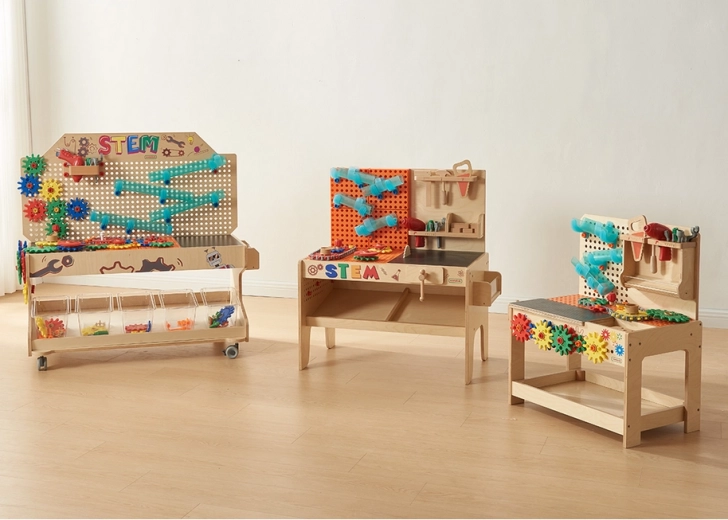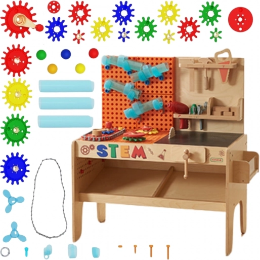 Masterkidz drevený montessori STEM dielenský stôl XXL s náradím a príslušenstvom