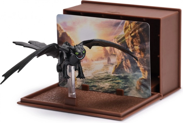Vstúpte do sveta AKO VYCVIČIŤ DRAKA s vreckovou kolekciou drakov, ktoré môžete skladať, vystavovať a zbierať. Každý drak má prepracované detaily, krídla v letovej póze a vďaka číremu stojanu sa vznáša pred maľovaným pozadím. Kniha–box sa uzatvára na cestovanie a po otvorení vytvorí scénu na okamžité vystavenie.